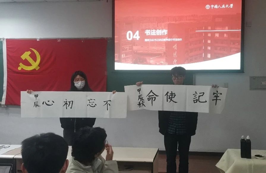 本次“翰墨书丹心——学习习近平总书记重要讲话精神”联合党日活动通过嘉宾讲解、同学讨论、视频学习、书法创作等方式,生动而有特色地学习了习近平总书记在全国教育大会和庆祝全国人民代表大会成立70周年大会上的重要讲话精神,加深了对习近平新时代中国特色社会主义思想的认识。