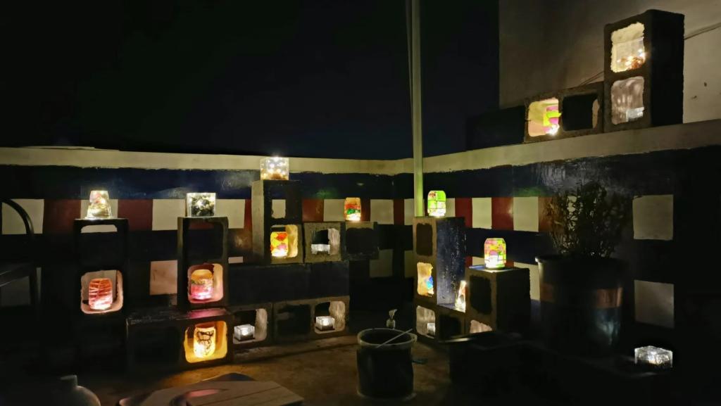 起初,多数村民并不赞同“美学角落”行动,他们不愿特意花费时间和金钱重新折腾自家门前的小角落。为了让村民更好地理解“美学角落”行动,艺馨和汝灏决定组织团队成员在工作室小院内打造几个“美学角落”样板。作为样板的美学角落需要满足“低成本、小面积、大创意”的原则,每个造价控制在500元以内,面积1-5平米,过程中借助策划将创意和点子体系化,可落地、能评价。每个美学角落的生成流程分为七步:选址→设计→采购/收集材料→搭建主体→增加创意部分→摆放植物→增加灯光、名称牌。但在具体实施过程中,艺馨和汝灏才真正意识到了实践的复杂性和乡村的独特性。