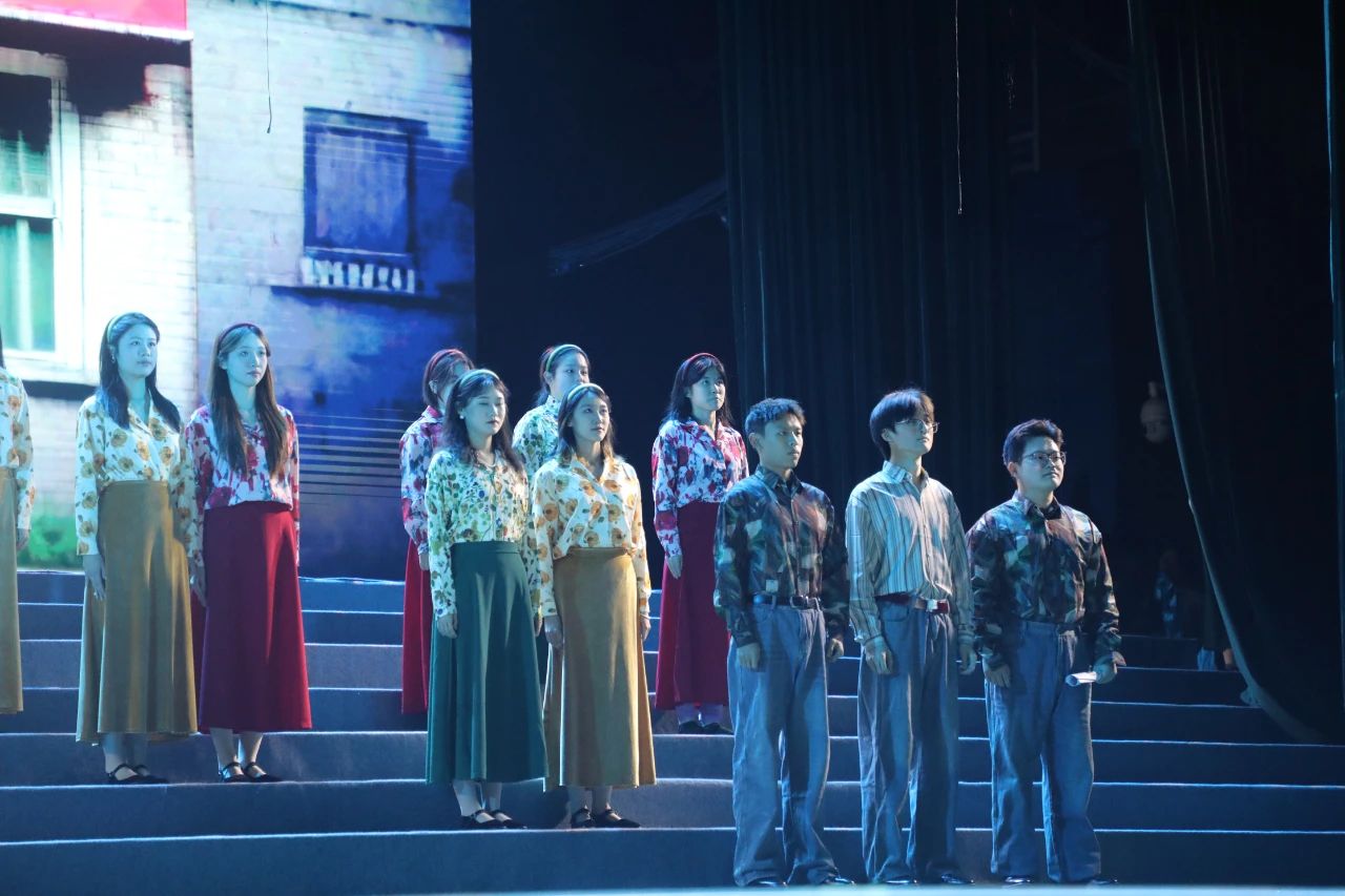 两个多月的坚守,一次次的练习,今日的圆满是老师和同学们共同努力的结果!每一次和声、每一次动作,艺院学子演绎了对文艺的坚定信念和真挚追求!聚光灯下,他们昂首挺胸、芳华尽显,带来属于那个年代的真情与思念。