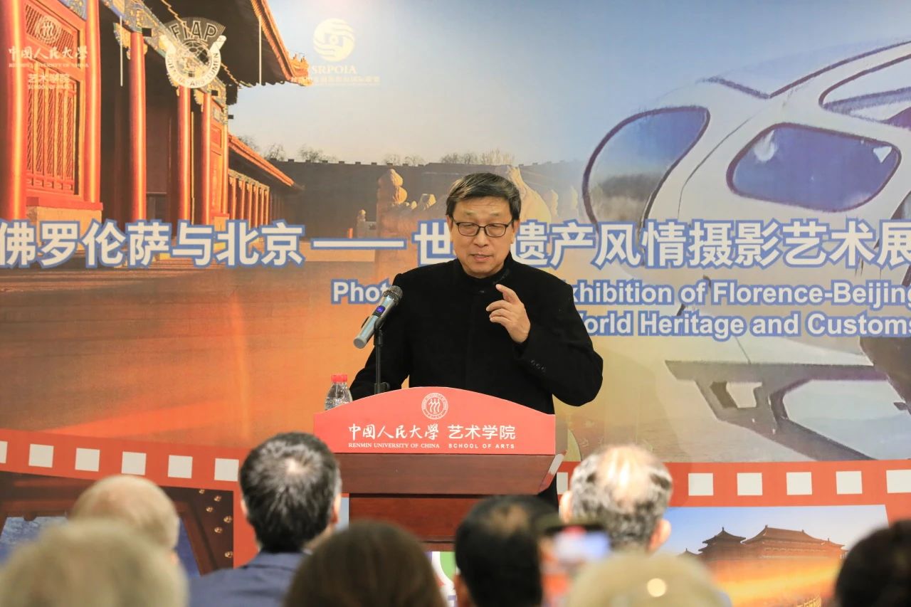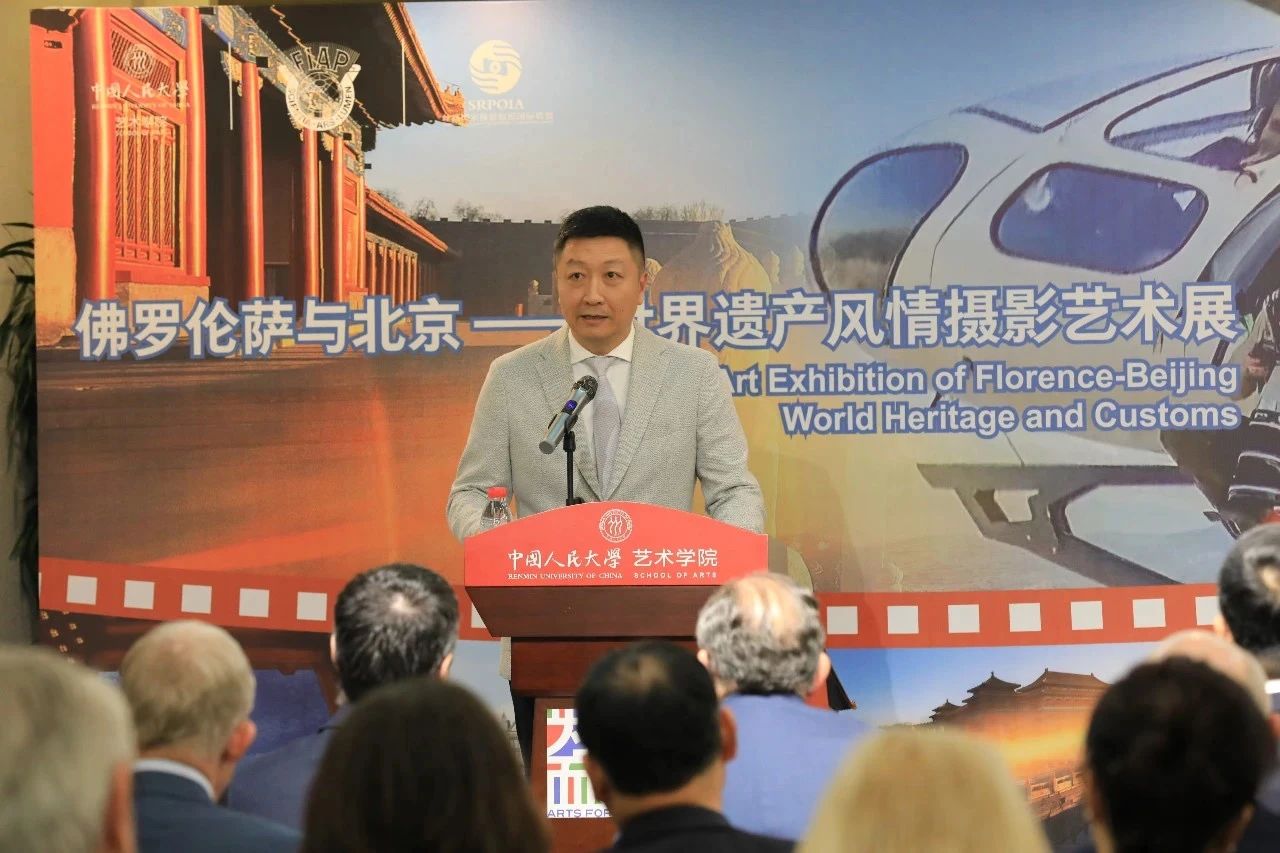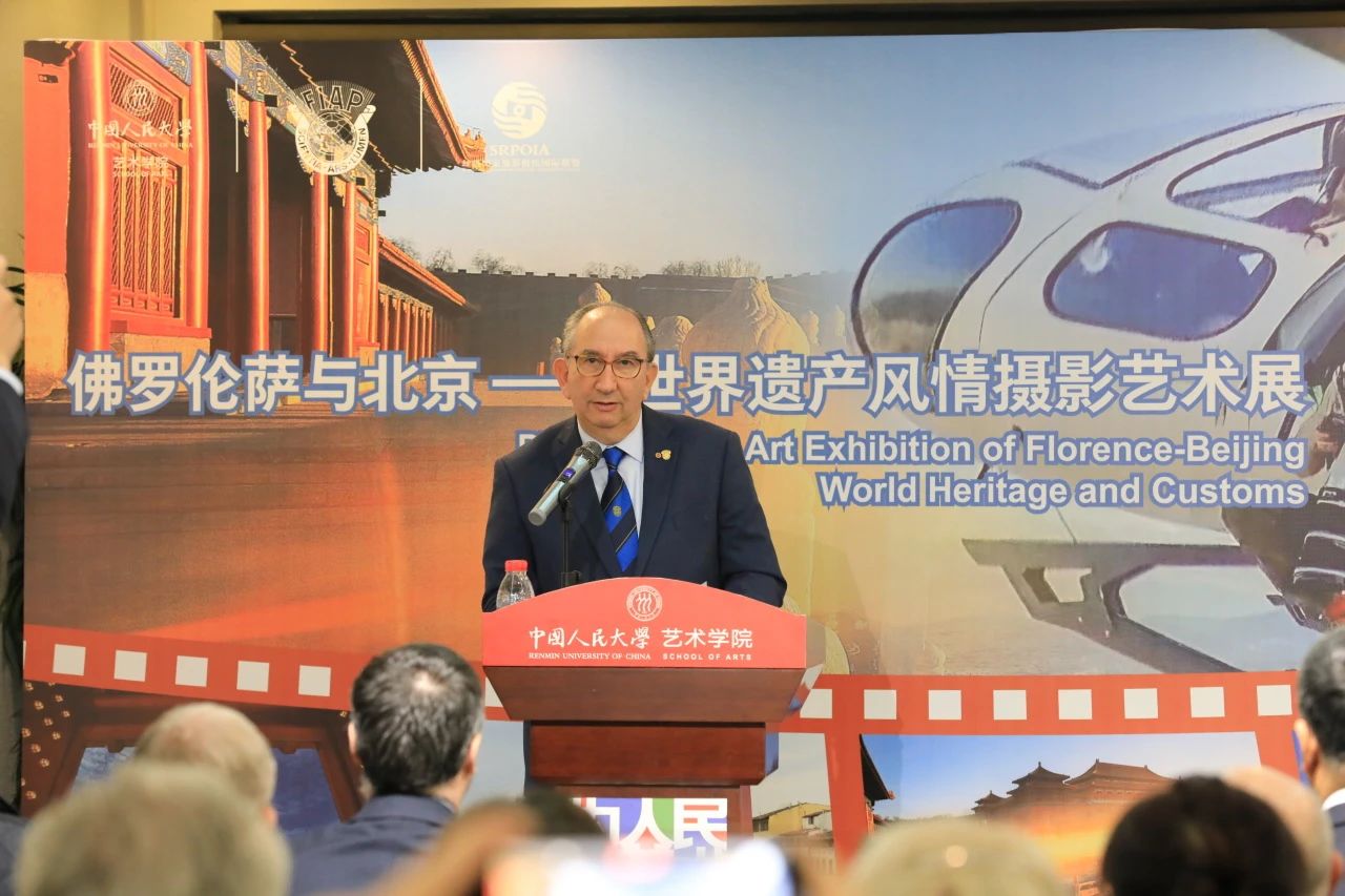 为此次展览所做的精心准备表示感谢。他表示,北京作为中国的首都,拥有悠久的历史和丰富的文化遗产,佛罗伦萨是意大利文艺复兴的摇篮,两者通过摄影艺术实现了跨越时空的对话。此次展览不仅是两国摄影师杰出作品的展示,更是两国之间深厚的尊重和友谊纽带的证明与象征,也是代表东西方的两个标志性城市的世界遗产之间的永恒对话,展现了佛罗伦萨的文艺复兴遗产和北京的千年传统与创新,通过摄影这一艺术形式,将东西方两个标志性城市的世界遗产紧密相连。