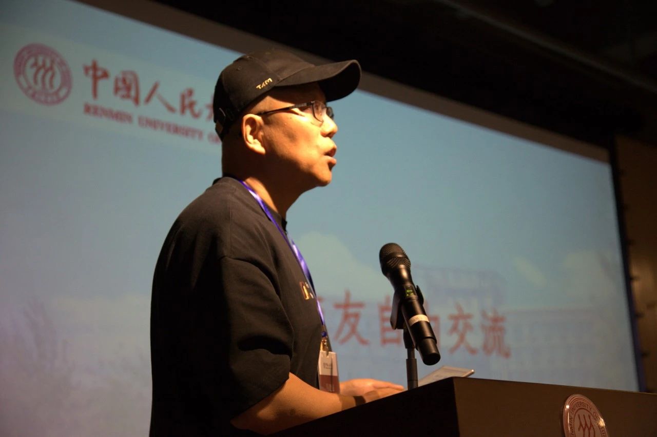 现任北京奇比方奇影视文化有限公司导演的武健(2008届艺术设计新媒体专业学士),以“以人大艺术讲中国故事”为题进行发言。他指出,正是人大“融合、开放、包容”的教育理念和跨学科训练,为他日后从事影视导演工作奠定了坚实基础,让他具备了讲述复杂时代故事的底气与能力。武健认为,讲好中国故事不仅是讲宏大叙事,更是传递每一个创作者心中真诚的体会与感受。他提倡“更真、更准”的影像表达,呼吁学院进一步加强影视化方向建设,推动更多具有时代温度和文化深度的作品涌现。