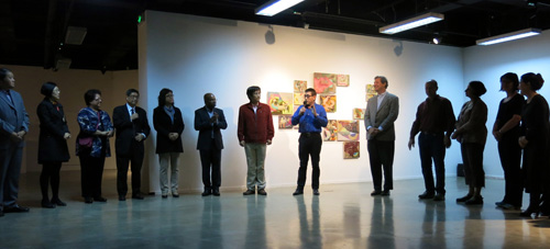 领导丁方分别致辞,对展出作品给予高度评价,并祝展览成功,两校合作更进一步。