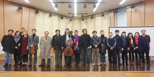 丁方院长及音乐系主任王玫、副主任张放等,就男人天堂