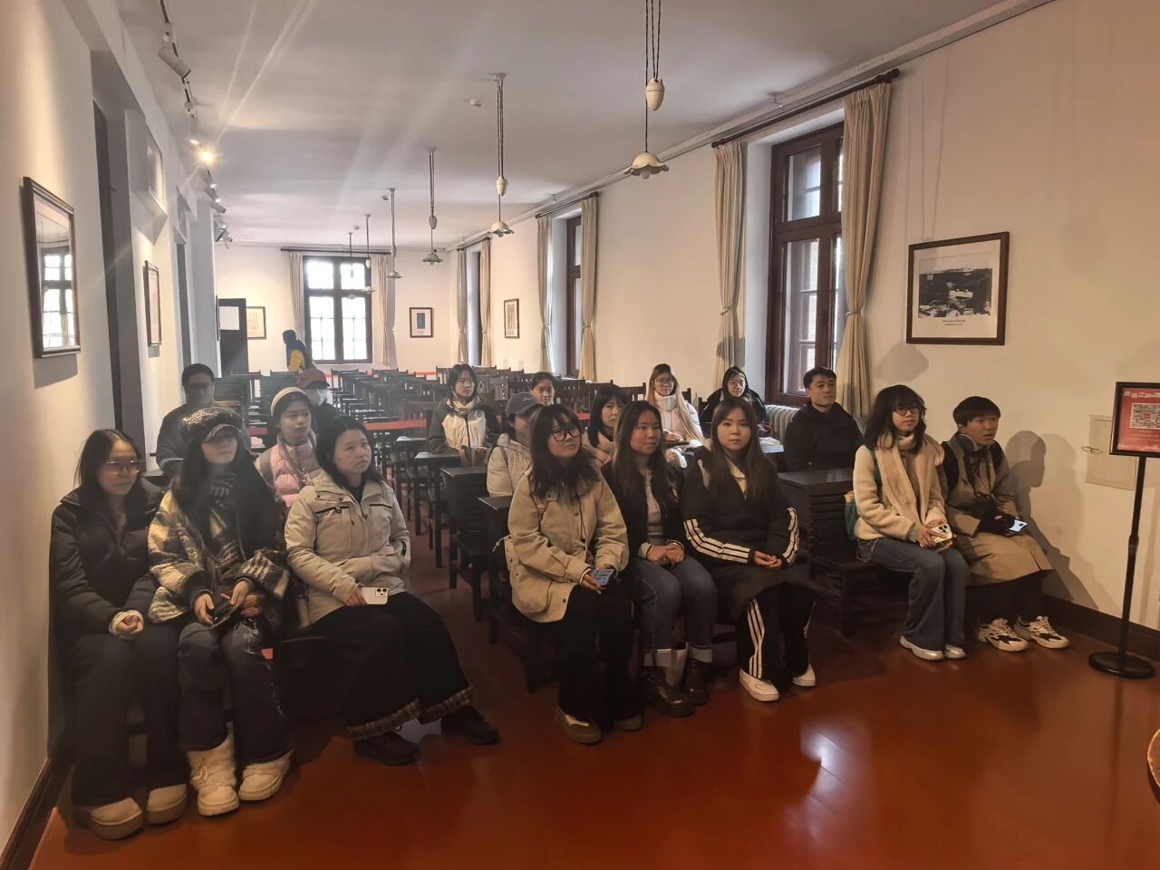 “站在先辈们传播真理的地方,真切体会到学院‘为人民而艺术’理念的历史源头。”绘画系学生第一党支部党员史惠青在展品前驻足良久。在复原场景大教室里,党员、团员们端坐着聆听讲解,当得知这里曾见证青年学子为国家出路奔走求索的历程时,2025级绘画班团员陈楚仪感慨:“课本里的‘觉醒年代’在此变得立体可感,更懂肩头的传承之责。”