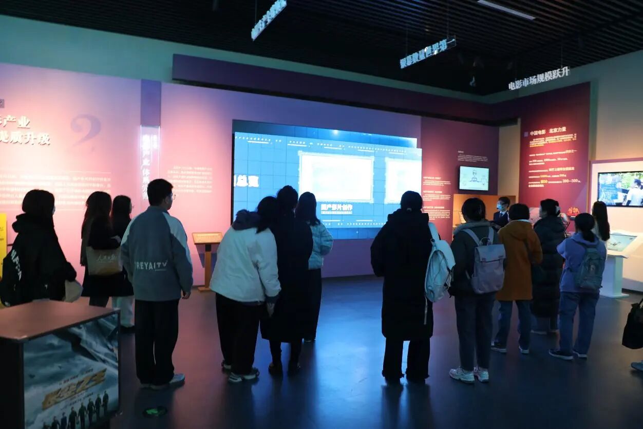 展览以思想领航为核心,从电影创作、产业升级、科技革新、公共服务、国际交流五个维度,全景式呈现了党的十八大以来中国电影事业的跨越式发展成就。在以人民为中心的创作导向下,主旋律电影、现实题材电影、传统文化题材电影繁荣涌现;电影产业全链条提质升级,银幕数量与票房稳居世界前列;虚拟摄制、国产电影设备、高格式放映系统等科技成果实现创新突破;城乡公益放映、电影教育、电影节展等公共服务普惠民生;中国电影通过国际合作、海外发行、中外合拍等形式走向世界,彰显出鲜明的文化自信与强劲的国际影响力。这些成就均让参与师生深受触动。